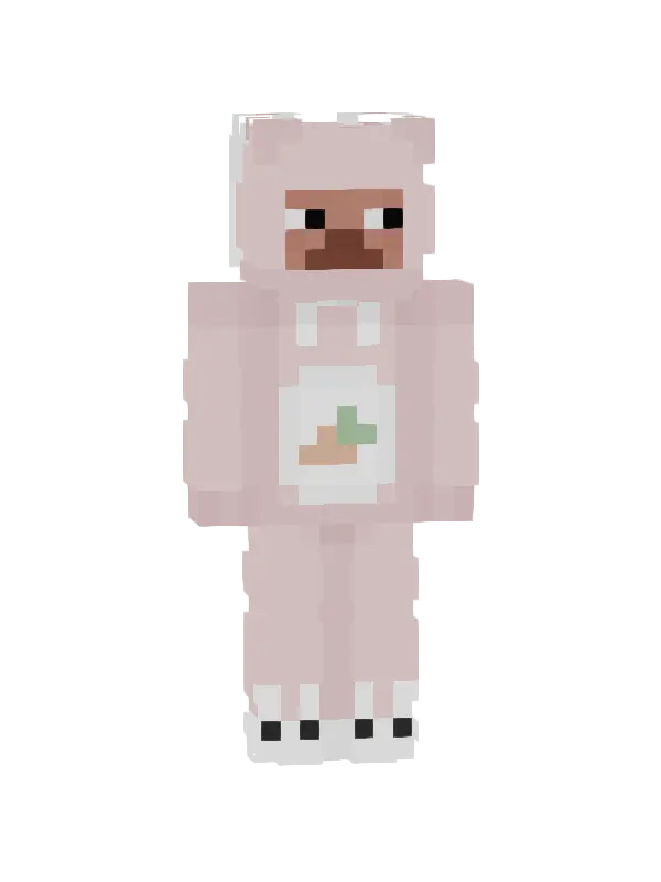 Skin Królika Minecraft, uroczy wygląd z różowymi uszami, beżowym swetrem i brązowymi spodniami, perfekcyjny dla miłośników słodkich postaci w grze.