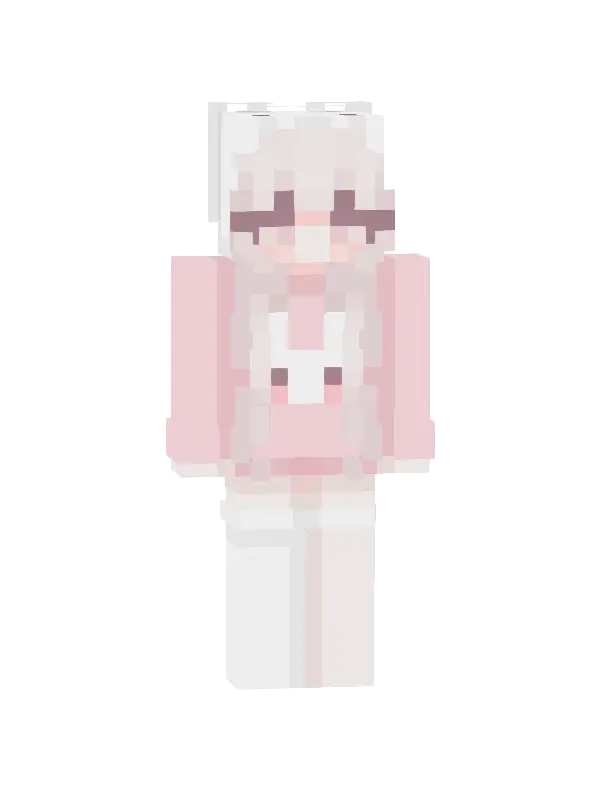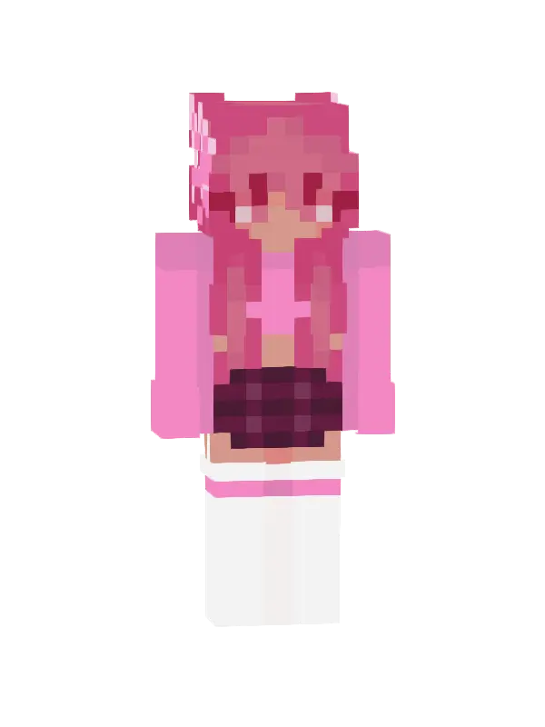 Skin uroczej dziewczyny Minecraft z różowymi włosami i dużymi oczami, w czarnej bluzie i jasnych spodniach, idealny do zabawy w grze!