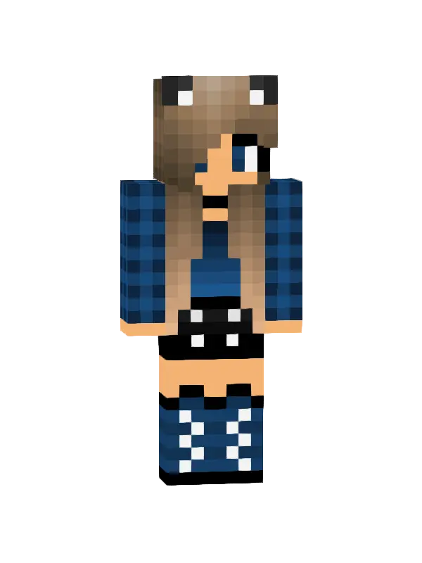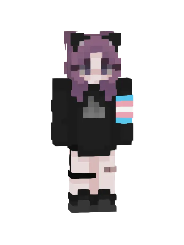 Skin Kociej Dziewczyny Minecraft to uroczy wygląd z jasnymi włosami, fioletową bluzą, czarną spódniczką i skarpetkami. Idealny dla miłośników stylu kawaii!