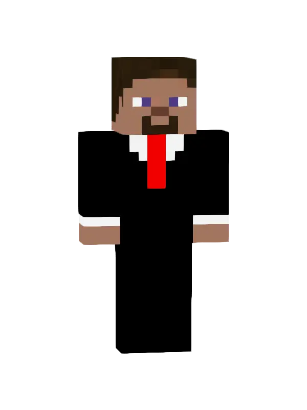 Skin Eleganckiego Biznesmena w Minecraft to stylowy mężczyzna w czarnym garniturze z niebieskimi mankietami i złotą krawatem. Idealny dla fanów elegancji!
