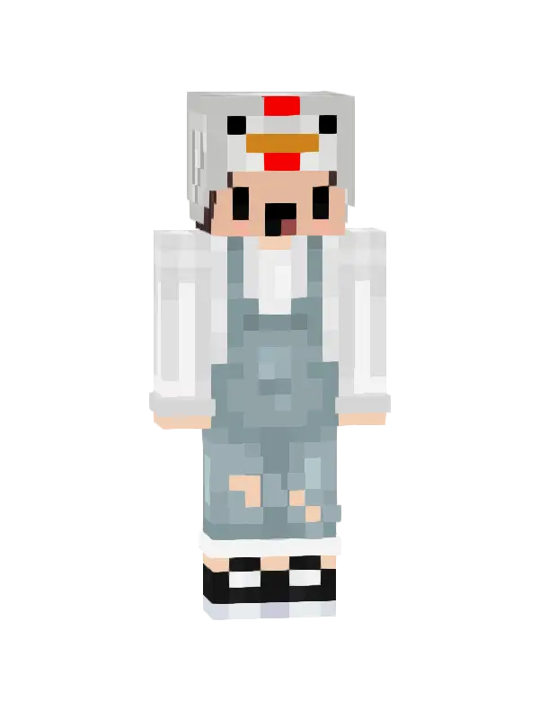 Skin Truskawki Minecraft to uroczy czerwony bohater z głową w kształcie owocu, czarnym fartuszkiem i limonkowym nadrukiem, idealny na przygody!
