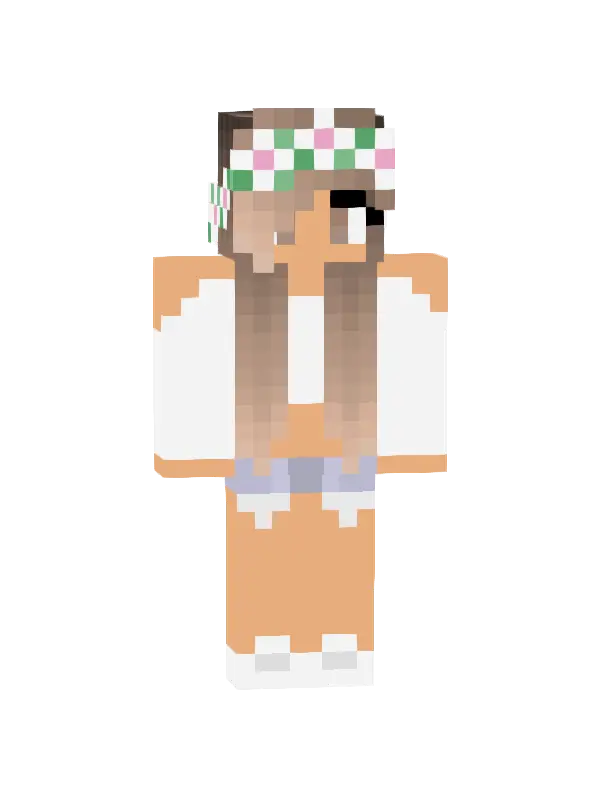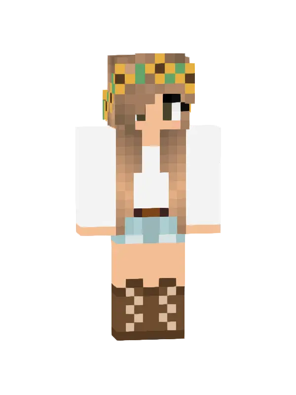 Skin Księżniczki Minecraft z długimi blond włosami, ozdobionymi tiarą oraz stylowym brązowym topem i spodniami w paski. Idealny do wyróżnienia się w grze!
