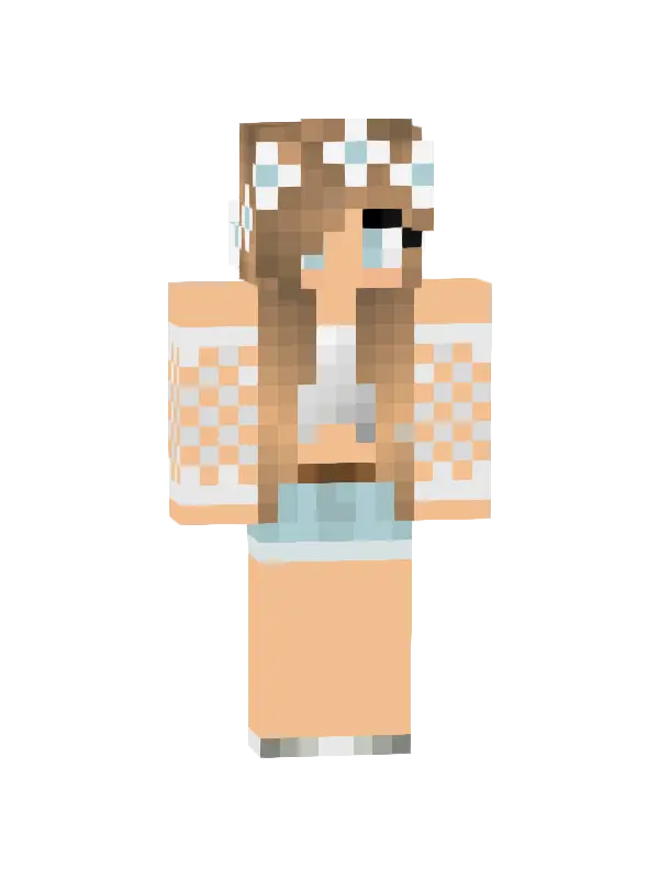 Skin Modnej dziewczyny Minecraft w białym topie, przetartych jeansach i białych sneakersach, wyróżnia się kwiatową opaską. Idealny wybór dla stylowych graczy!