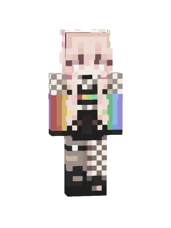 Skin Minecrafterski inspirowany modnym stylem, z niebieskimi włosami, czarnymi i białymi wzorami oraz elegancką sukienką, idealny do wyróżnienia się w grze!