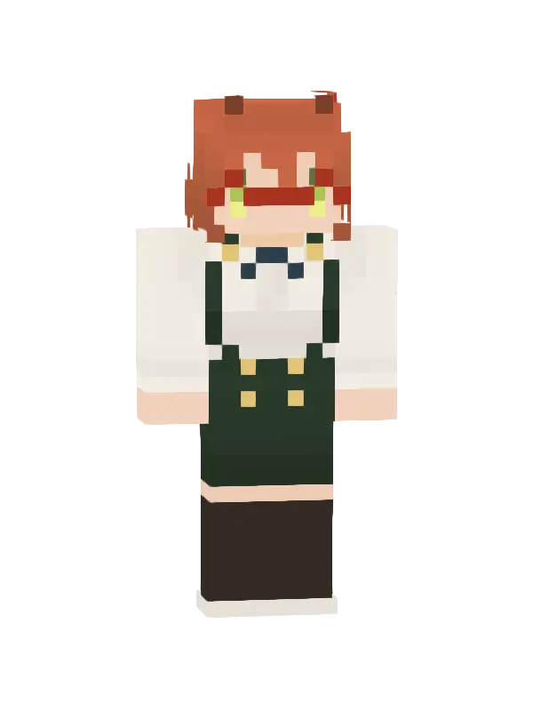 Skin Minecraft w stylu czarodziejki z długimi, rudymi włosami i zielonymi akcentami. Idealny dla miłośników magii i fantasy w grze!