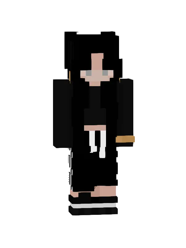 Skin Minecraft z postacią o długich czarnych włosach, w czarnej bluzie i białych spodniach. Idealny dla miłośników stylu streetwear i oryginalności w grze!