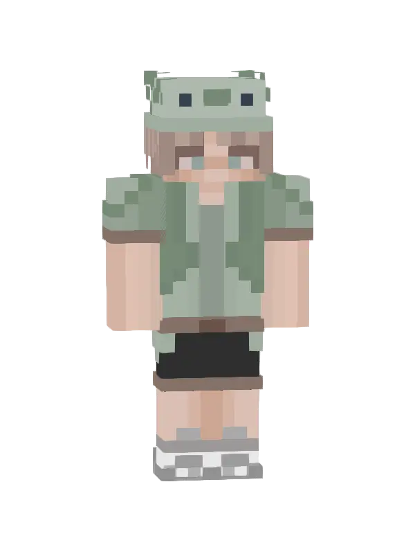 Skin Kawaii Zielonego Smoka w Minecraft to uroczy wygląd z zieloną czapką oraz pastelowym outfitem. Idealny dla miłośników kawaii i zabawy!