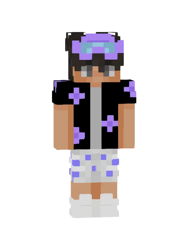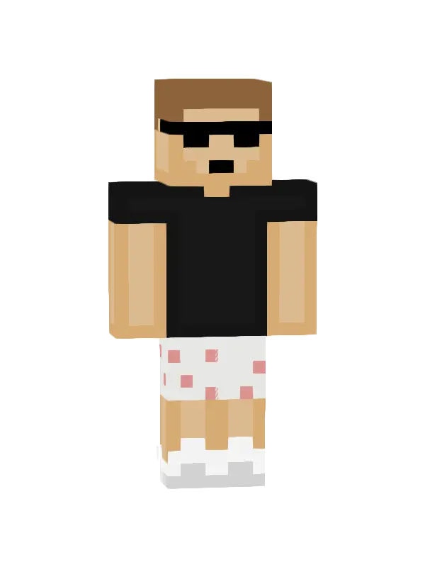 Skin Letniego Chłopaka w Minecraft to stylowy strój z czarną koszulą w zielone wzory, krótkimi szortami i białymi butami, idealny na wakacyjne przygody!