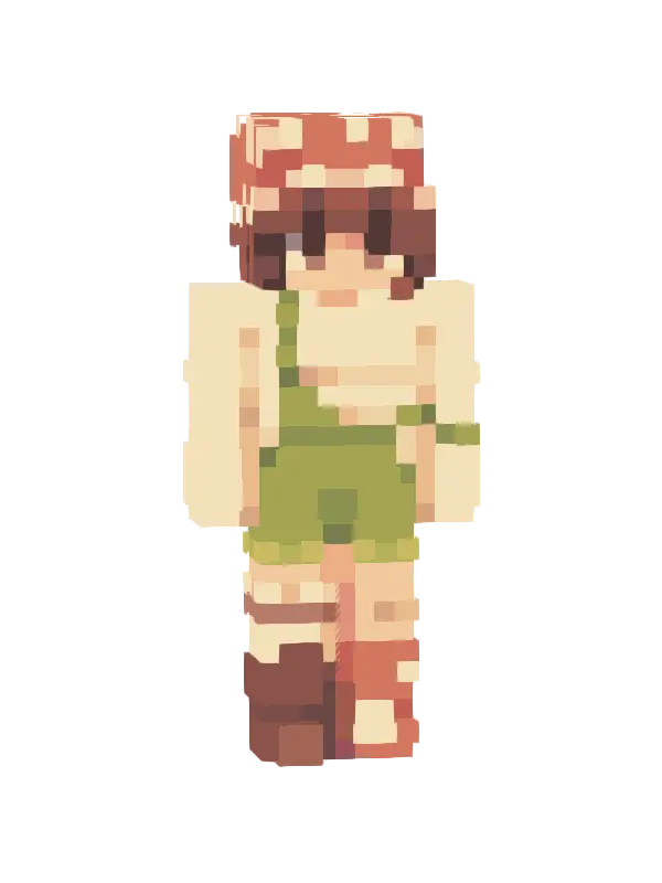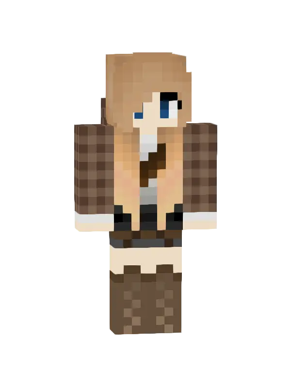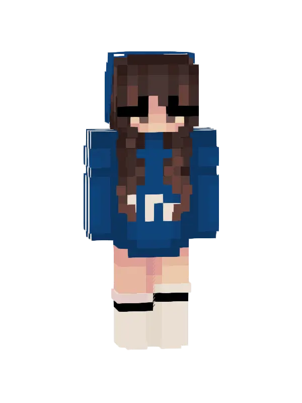 Skin Minecraft dziewczyny z długimi, brązowymi włosami, zielonym swetrem, spódnicą i białymi skarpetkami. Idealny wybór dla miłośniczek stylu kawaii!