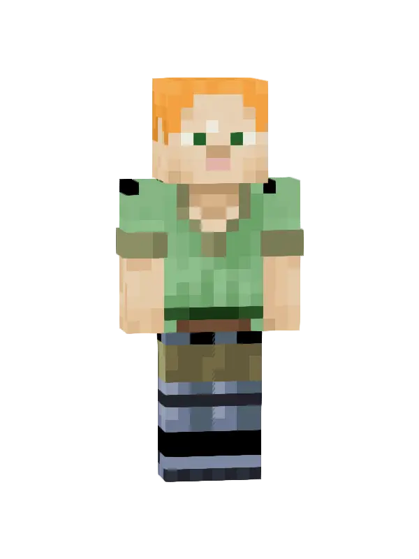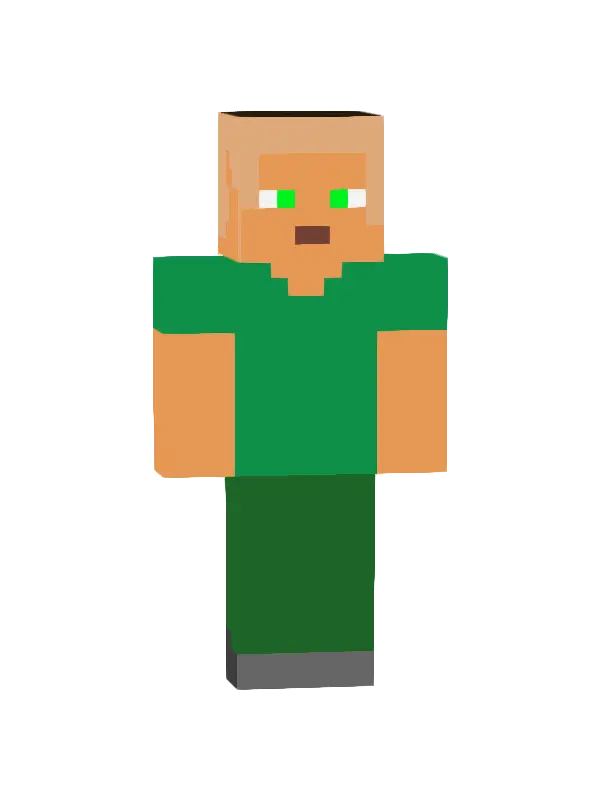 Skin Minecraft z zieloną koszulą i fioletową kurtką, brązowymi spodniami oraz krótkimi włosami, idealny dla graczy szukających stylowego wyglądu!