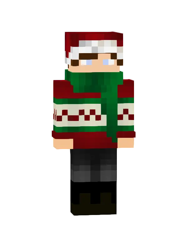 Skin Świątecznego Grincha do Minecraftu, ze stylową zieloną bluzą, czerwonym szalikiem i czapką mikołaja. Idealny na zimowe przygody!