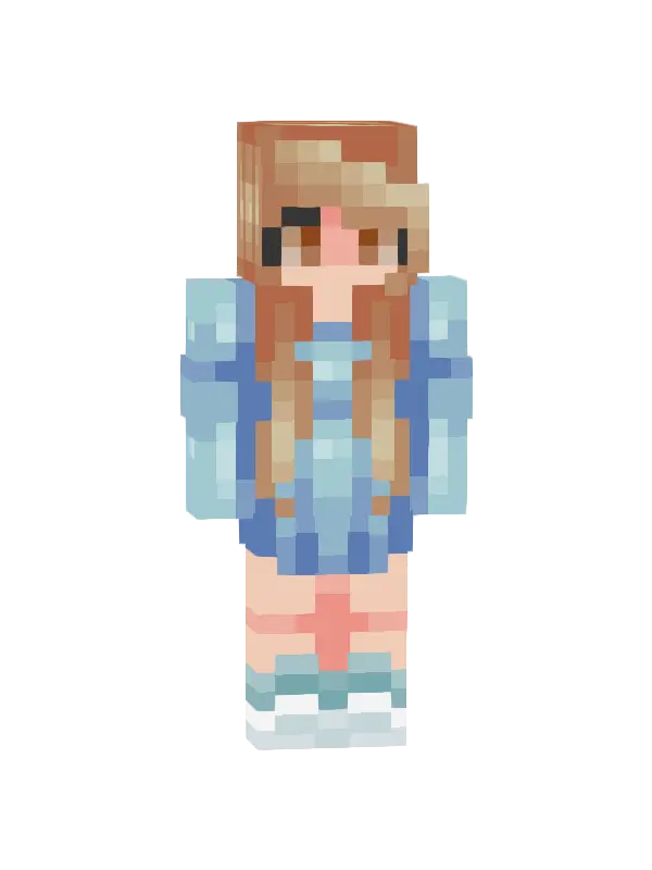 Skin Minecraft uroczej kelnerki z blond włosami, niebieską sukienką i białymi rękawiczkami. Idealny dla fanów kawaii stylu w grze!