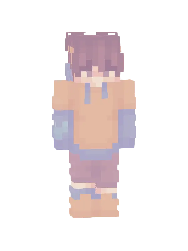 Skin w Minecraft w fioletowej bluzie z kapturem i czarnych spodniach z białymi akcentami, świetny wybór dla fanów stylowego wyglądu!