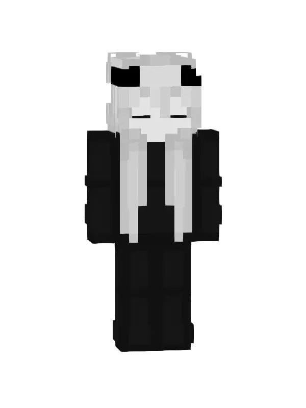 Skin Minecraft z ciemnymi włosami i szaro-czarnym strojem, doskonały dla fanów mrocznego stylu. Wyróżnij się w grze unikalnym wyglądem!