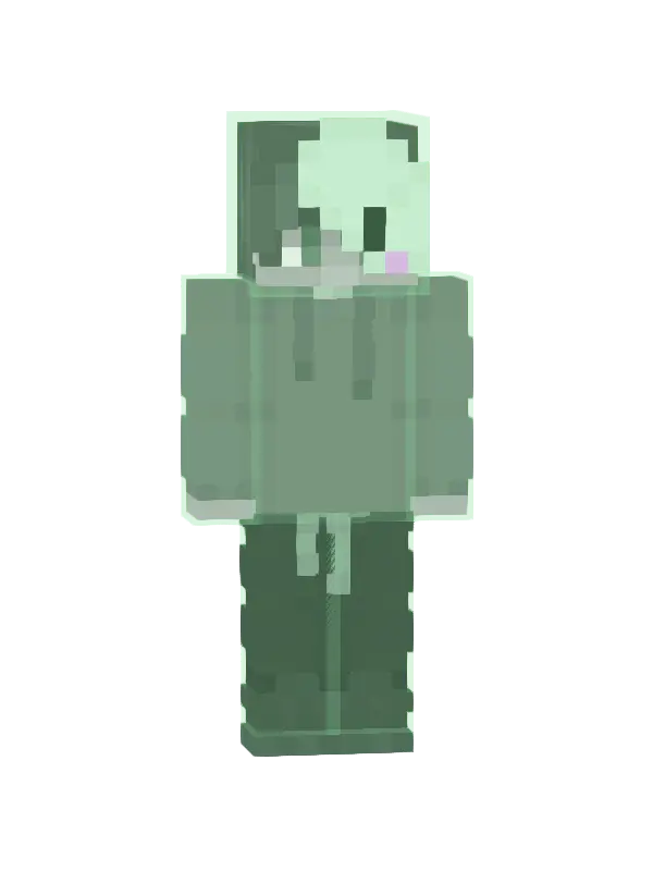 Skin Minecraft przedstawiający postać w zielonej tunice z fioletowymi rękawami i ciemnymi włosami, idealny dla poszukujących unikalnego stylu w grze!