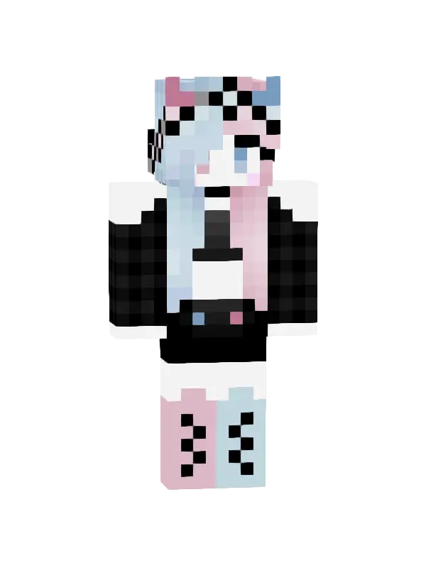Skin kawaii dziewczyny w Minecraft, z niebieskimi włosami, różowymi akcentami i urokliwym strojem. Idealny do wyróżnienia się w grze!