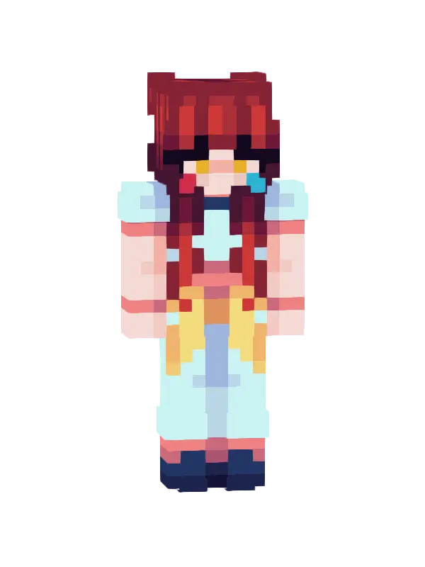 Skin Japonki Minecraft to urocza postać w tradycyjnym kimono z różowym akcentem oraz długich, ciemnych włosach. Idealny dla miłośników kultury japońskiej!