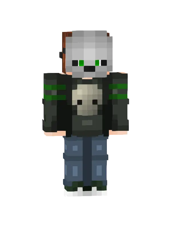 Skin Minecraft w zielonym kapturze, z maską i spodniami w ciemnym kolorze. Idealny wybór dla fanów stylu miejskiego i przygód w grze!