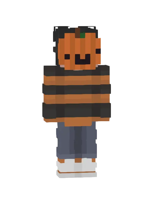 Skin Halloweenowej czarownicy w Minecraft z pomarańczowym kapeluszem, czarnym swetrem i spódnicą, doskonały do zabawy w stylu spooky!