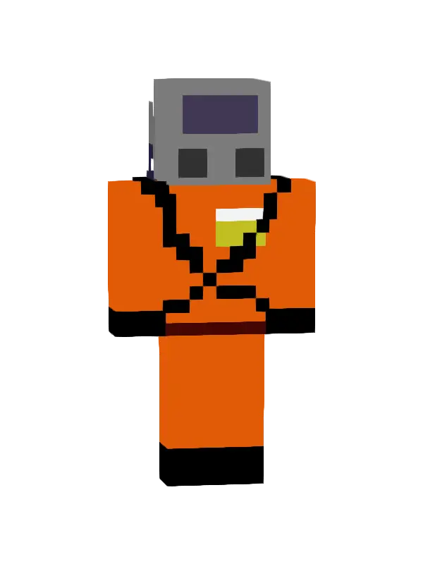 Skin astronauty Minecraft w pomarańczowym skafandrze z czarnymi detalami. Idealny dla miłośników kosmosu, wyróżni cię na serwerach!