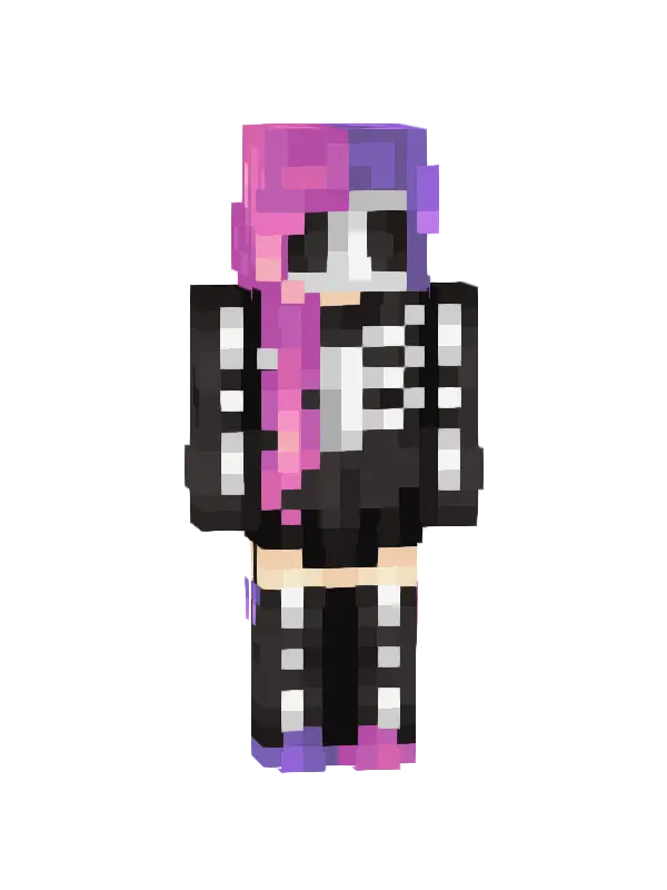 Skin mrocznej postaci w Minecraft z czarną bluzą, białym wzorem oraz jasnymi rękawami. Idealny dla fanów tajemniczych klimatów!