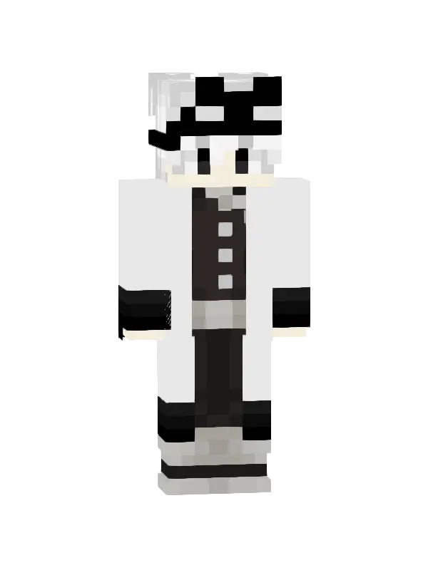 Skin nauczyciela Minecraft z różowymi włosami, szarym płaszczem, czerwoną krawatem i brązowymi butami. Idealny dla fanów szkolnych klimatów!