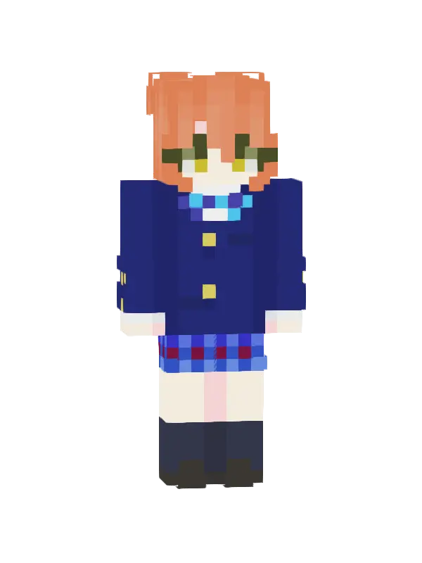 Skin uczennicy do Minecraft, z brązowymi włosami, granatową marynarką i krótką spódniczką. Idealny dla fanów szkolnych klimatów! Wyróżnij się w grze!