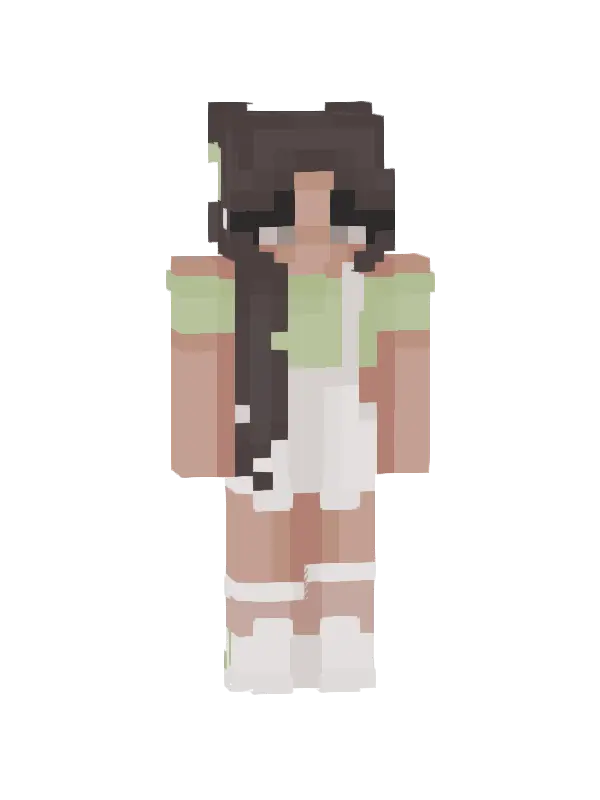 Skin Minecraft w stylu casual z zieloną bluzą i długimi brązowymi włosami, uzupełniony białymi skarpetkami. Idealny dla przytulnych przygód!